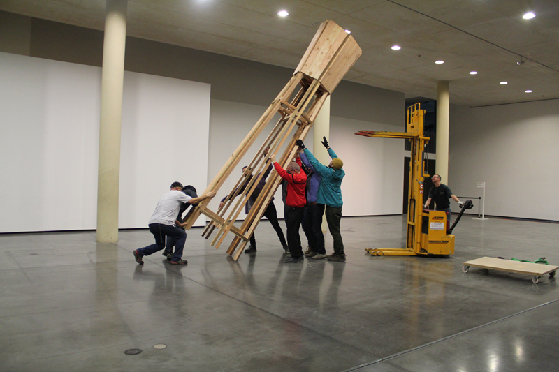 Pour restituer ce parcours, la richesse et la complexité des gestes vécus, Feda Wardak a imaginé une architecture éphémère, présentée au MAC VAL du 19 au 29 janvier 2020. Les lignes tracées ensemble y convergent et forment de nouvelles topographies dans le plâtre. Les eaux apportées par chacun des participants se mêlent. Chaque goutte compte, leur lente progression à travers ces paysages de mémoire anime un horizon dessiné par de longs balanciers de bois.